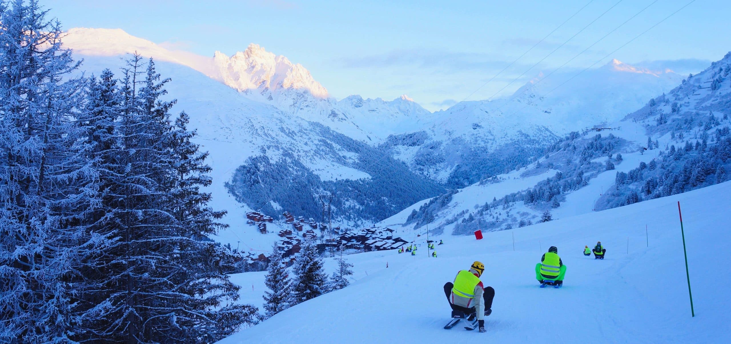 Lancez vous sur nos luges pour 5km de descente depuis Aime 2000 jusqu’à La Roche à la fermeture des pistes!